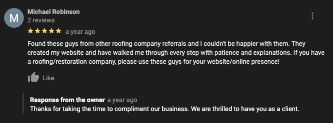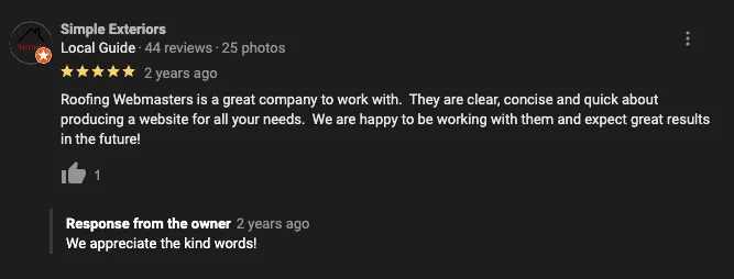 We LOVE clients who are ready to listen and learn (and eager to grow)! It is best that you already have a website and a Google Business Profile with reviews on it. While we can work with a brand new business, you must go into it knowing it will take longer to see results. Roofers generally have limited knowledge of SEO, which is very understandable. We aren't roofers, though we have picked up a lot in our years of serving them. The bottom line: we know our stuff. If you can trust in our experience (or at least in our risk-free trial period), you'll see firsthand the impressive growth that keeps our clients coming back for more. In the meantime, feel free to all your questions to our experienced SEO professionals!